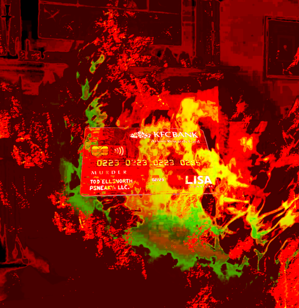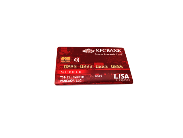 Your payment is due. Present your Arson Rewards Card at the nearest KFC Bank for the pservice of a lifetime.